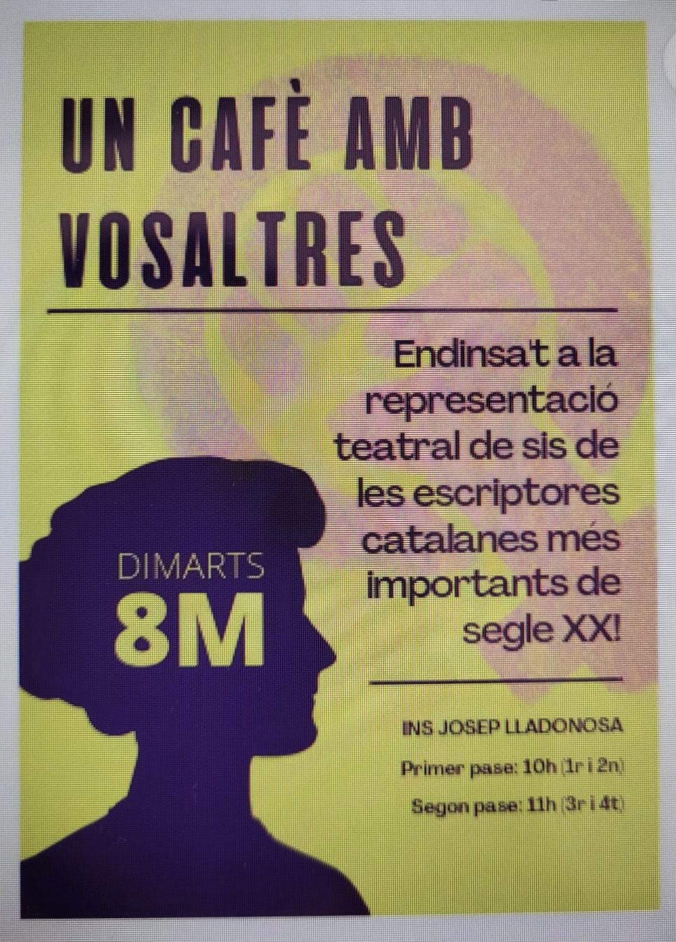 En febrero de 2022 nuestra profesora de literatura catalana nos propuso realizar una obra teatral con el objetivo de celebrar el día internacional de la mujer el 8 de marzo. Nosotros aceptamos su propuesta y ella puso en marcha este proyecto y nos ayudó en el proceso.